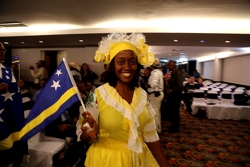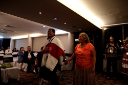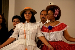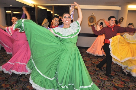 Special tokens were presented to all the chapter presidents by the Costa Rican delegation, and national memorabilia was handed out to the entire audience. The group then returned with costumes replicating beautiful birds. As the smiling young ladies floated across the stage with their long train swooshing through the air it closely resembled birds in flight. The intermittent shriek of the high soprano voice leant even more to the imagery.